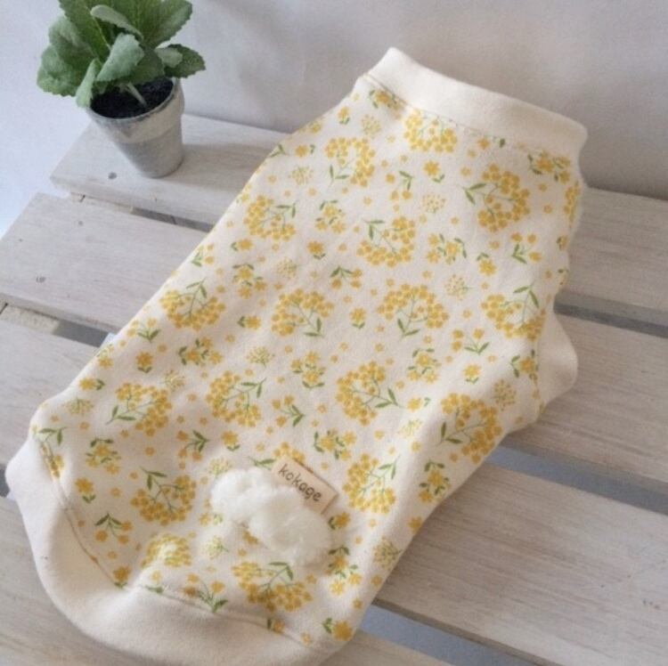 春の訪れを感じさせる可愛いミモザ柄の生地で作りました。