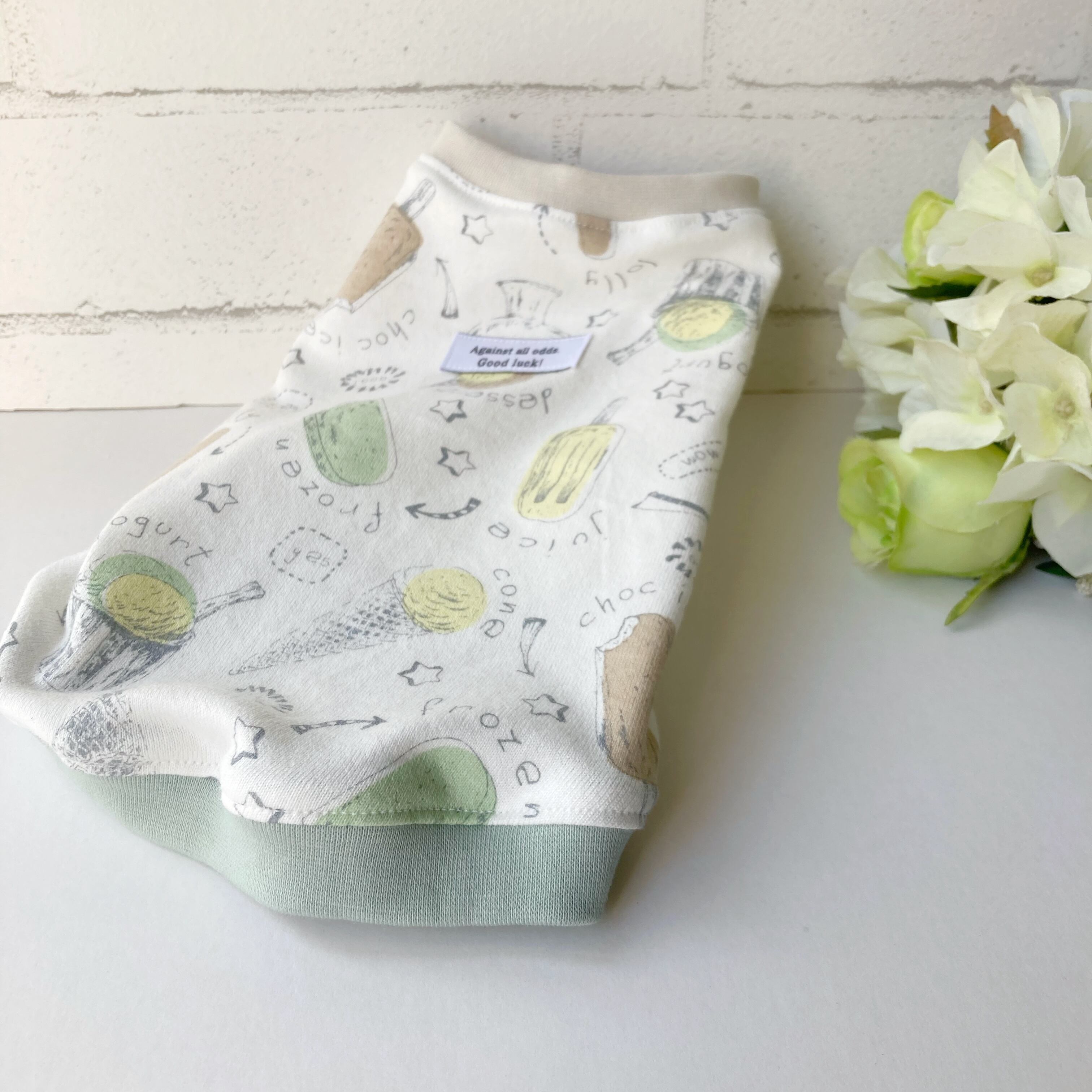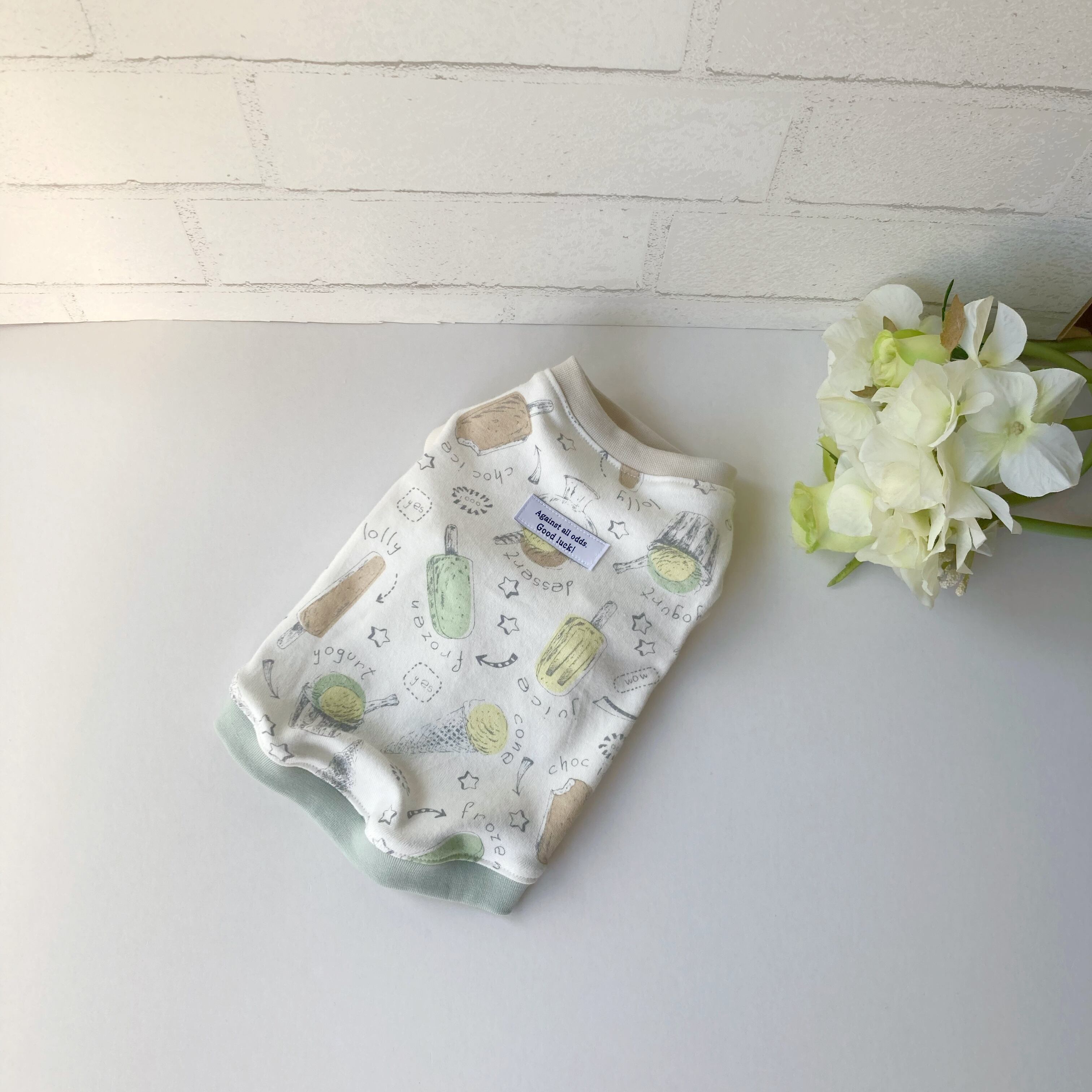 みんな大好きアイスクリームデザートがちりばめられたプリント柄です。